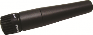 The SM57 by Shure is our go to instrument microphone  it is universal for practically all kinds of instruments! Instruments such as bass drums, bass bars, bahia drums are not well-suited for the SM57 due to their low frequencies. This microphone provides a clean sound which won’t distort, and because of its cardioid polar pattern, it wont pick up background noise. Additionally, you could use this microphone to pick up vocals.