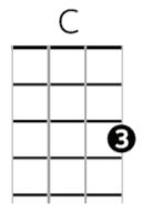 Now that you have your instrument in-tune and are holding it comfortably, it’s time to learn a few easy ukulele songs! Believe it or not, you can begin playing recognizable songs with just one finger on the fretboard! There are many well-known tunes that can be played using just the C chord. Begin by placing your ring finger on the 3rd fret of the 4th string.