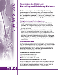 See this tip sheet, Focusing on the Classroom: Recruiting and Retaining Students for some good reminders about what to keep in mind as you prepare performances and create relationships with students and parents.