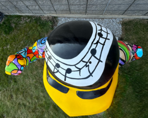 One week of brainstorming, four Herky mock-ups, and over 200 hours of painting led to a West Music star being born: “The Musical World of Imagination” Herky.