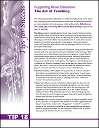 Read several excerpts to see how she captured and expressed the heart of teaching in this tip sheet, Supporting Music Education: The Art of Teaching