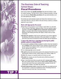 Know what your administrators expect and follow their directions to minimize errors that can cost your district time and money, as well as a delayed payment to your vendor. Find out what to look for and expect in a typical school system in this tip sheet, The Business Side of Teaching School Music: Fiscal Procedures